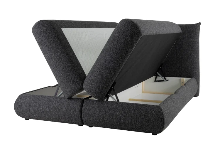 – Dwa pojemniki na pościel – praktyczne schowki pod materacem pozwalają wygodnie przechowywać kołdry, poduszki i inne tekstylia, dzięki czemu zyskujesz więcej miejsca w sypialni.