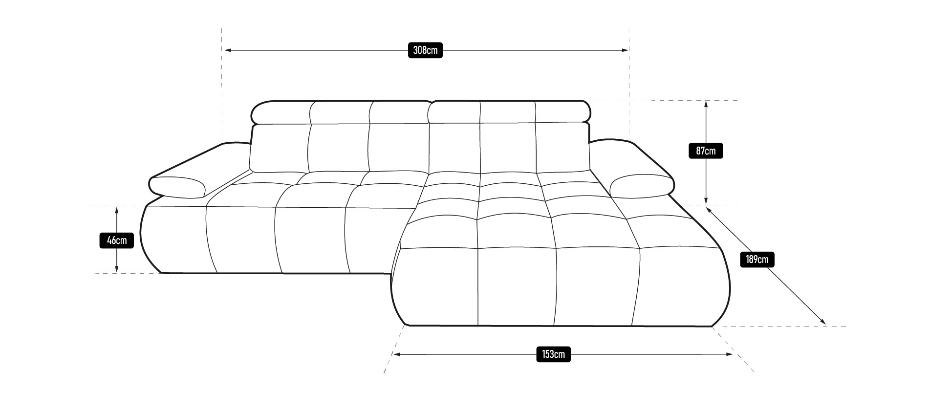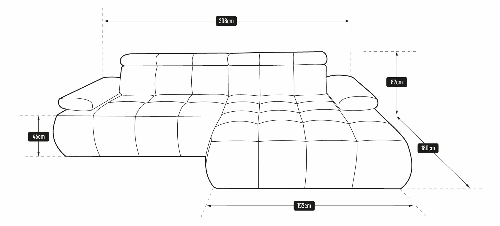 – Nowoczesny design – minimalistyczna bryła i delikatne przeszycia nadają narożnikowi elegancki, ponadczasowy wygląd.
