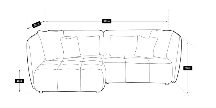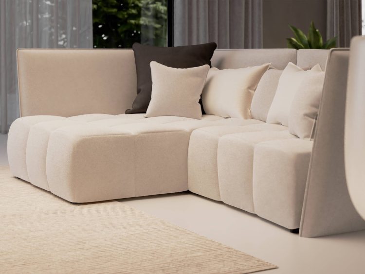 Narożnik SOPHIE to esencja nowoczesnej elegancji i funkcjonalnego designu, który wzbogaci każde wnętrze. Jego jasny, kremowy odcień dodaje przestrzeni lekkości i harmonii, idealnie komponując się z minimalistycznymi lub skandynawskimi aranżacjami. Dzięki dużym i wygodnym siedziskom zapewnia on wyjątkowy komfort – idealny zarówno do codziennego relaksu, jak i przyjęć w gronie rodziny i przyjaciół.