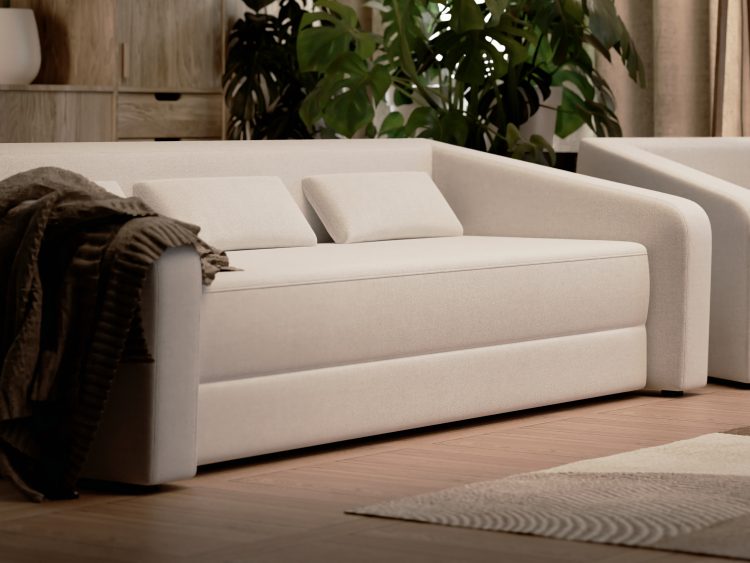 To sofa łączy ponadczasową elegancję z nowoczesnym designem i wprowadza stylowe akcenty do każdego wnętrza. Dzięki wyraźnym liniom i subtelnie zaokrąglonym podłokietnikom prezentuje się zarazem zachęcająco i szykownie. Wysokiej jakości tapicerka zapewnia optymalny komfort siedzenia i zaprasza do relaksu. Trwała tkanina w subtelnym, jasnoszarym odcieniu doskonale współgra z różnorodnymi koncepcjami kolorystycznymi i stylami aranżacji. Dzięki miękkim, dopasowanym poduszkom sofa tworzy przytulną atmosferę, w której od razu można się poczuć komfortowo. Solidny stelaż gwarantuje stabilność i wytrzymałość, dzięki czemu możesz cieszyć się tym meblem przez długi czas. Dzięki kompaktowej formie doskonale sprawdzi się w mniejszych mieszkaniach, nie rezygnując przy tym z komfortu i stylu. Jednocześnie może pełnić funkcję eleganckiego akcentu lub przytulnego punktu centralnego w bardziej przestronnych pomieszczeniach. Niezależnie od tego, czy chodzi o relaksujący seans filmowy, towarzyskie spotkanie czy krótką drzemkę – sofa ta elastycznie dostosowuje się do Twoich potrzeb. Ponadto wyposażona jest w zintegrowaną funkcję spania, dzięki której w mgnieniu oka zamienisz ją w wygodne miejsce do spania, co przyda się zwłaszcza w przypadku niespodziewanych gości. Dzięki nowoczesnemu charakterowi i ponadczasowej estetyce stanie się sercem Twojego domu i pozostawi niezapomniane wrażenie na Twoich gościach.